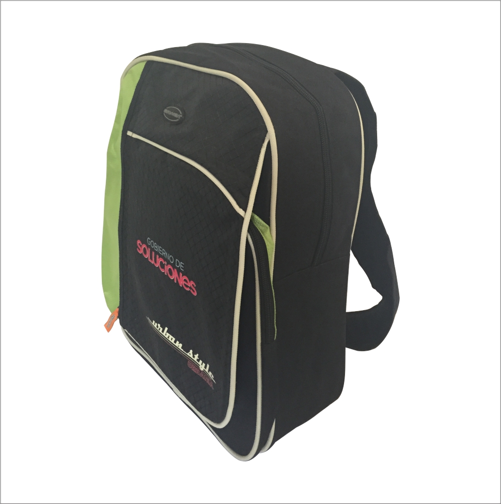 MOCHILA BANDOLA CON BOLSA AL FRENTE CON SOLAPA QUE TRAE CARTERA VERTICAL